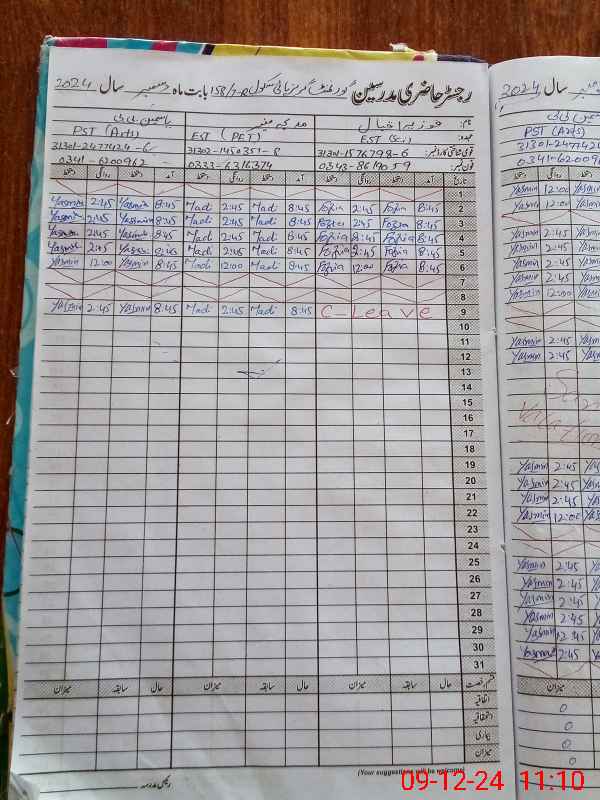 | Name: Fa**** Ja**** Designation: (School Headmaster's/Headmistress's) SSE (Science ) Phone/Cell Number: 03**** |