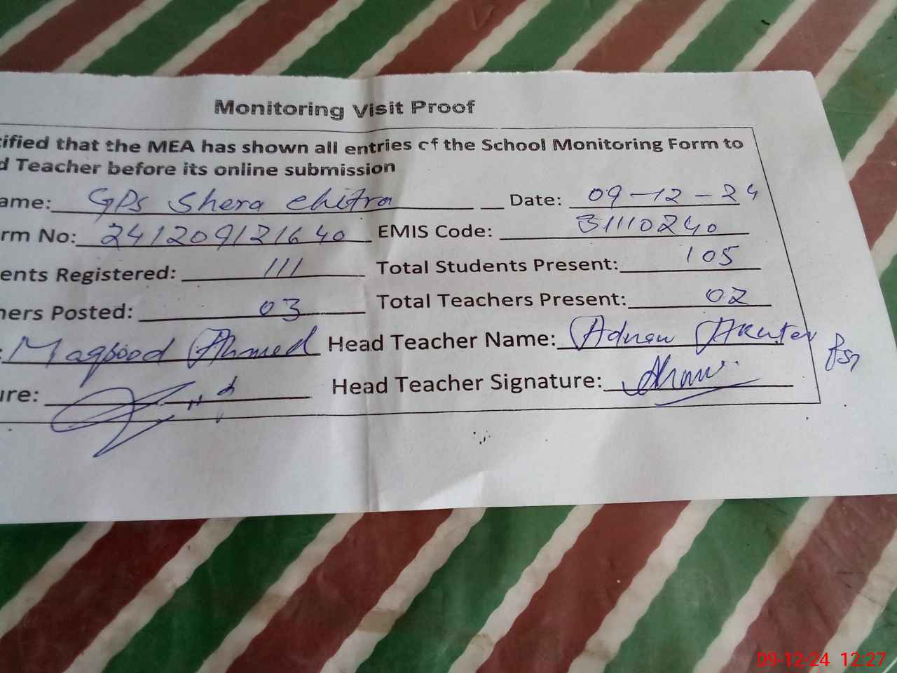 | EMIS Code: 31110240 | Name of School: GPS SHERA CHITRA | |||