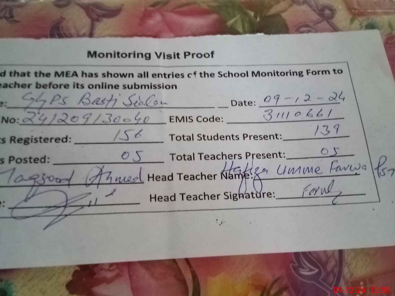 | EMIS Code: 31110661 | Name of School: GGPS BASTI SIALAN | |||