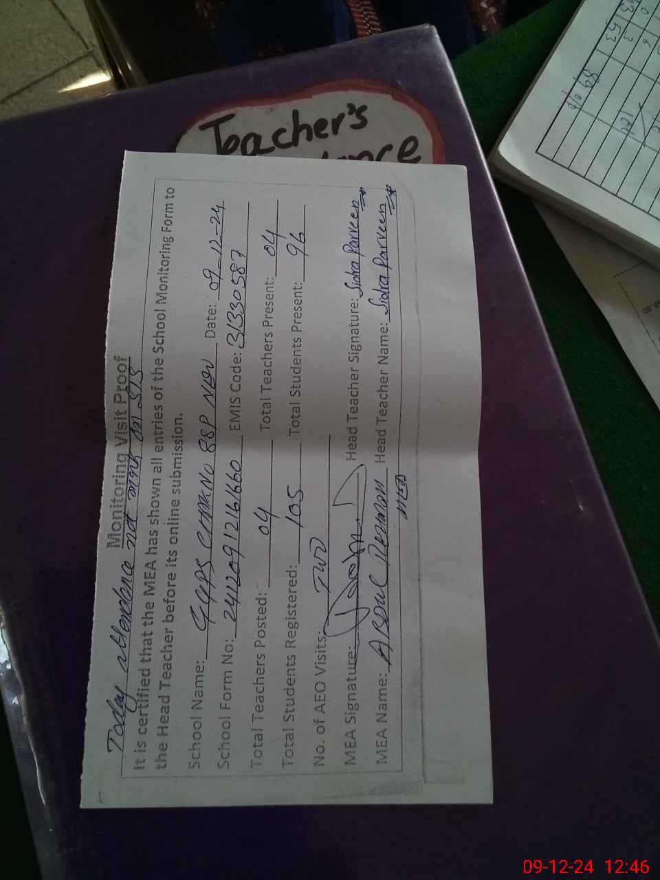 | EMIS Code: 31330587 | Name of School: GGPS 88/P NEW | |||