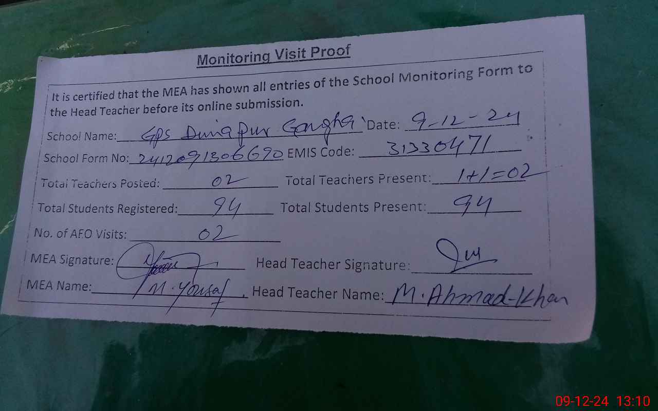 | EMIS Code: 31330471 | Name of School: GPS DUNYA PUR GANGA | |||