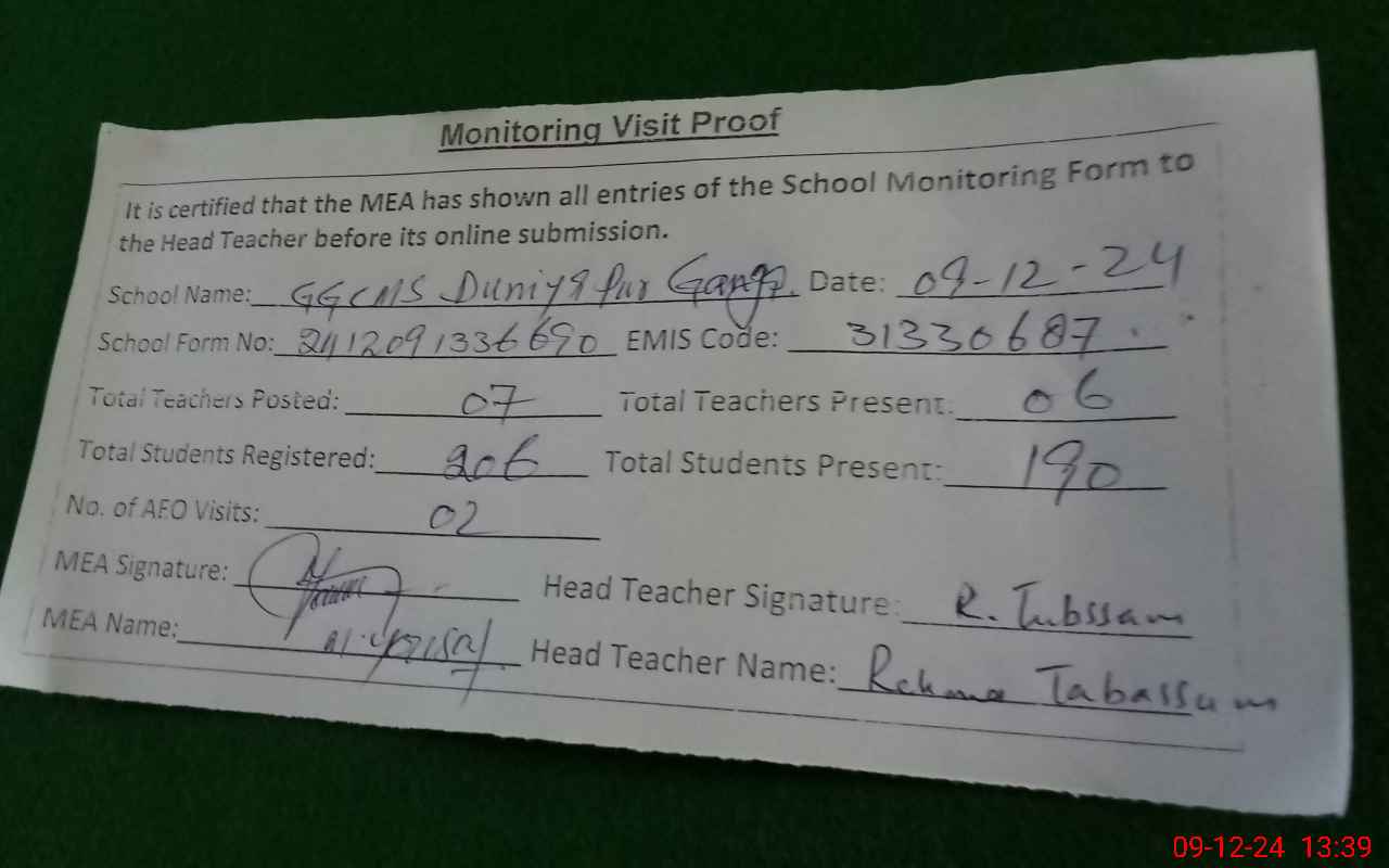 | EMIS Code: 31330687 | Name of School: GGCMS DUNIYA PUR GANGA BASTI YAR MUHAMMAD | |||