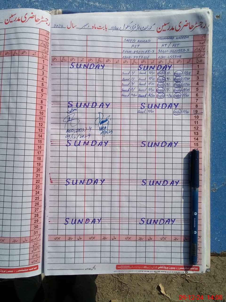 | Name: Mu**** Na**** Designation: (School Headmaster's/Headmistress's) PST Phone/Cell Number: 03**** |