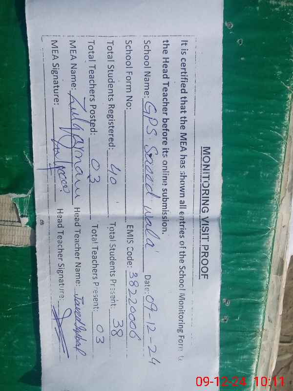| EMIS Code: 38220006 | Name of School: GPS SAEED WALA | |||