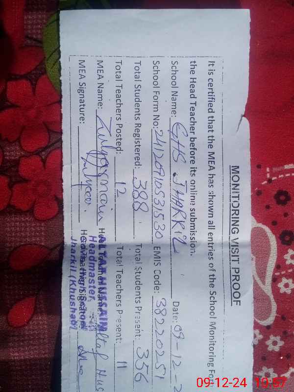 | EMIS Code: 38220251 | Name of School: GHS JHARKIL | |||