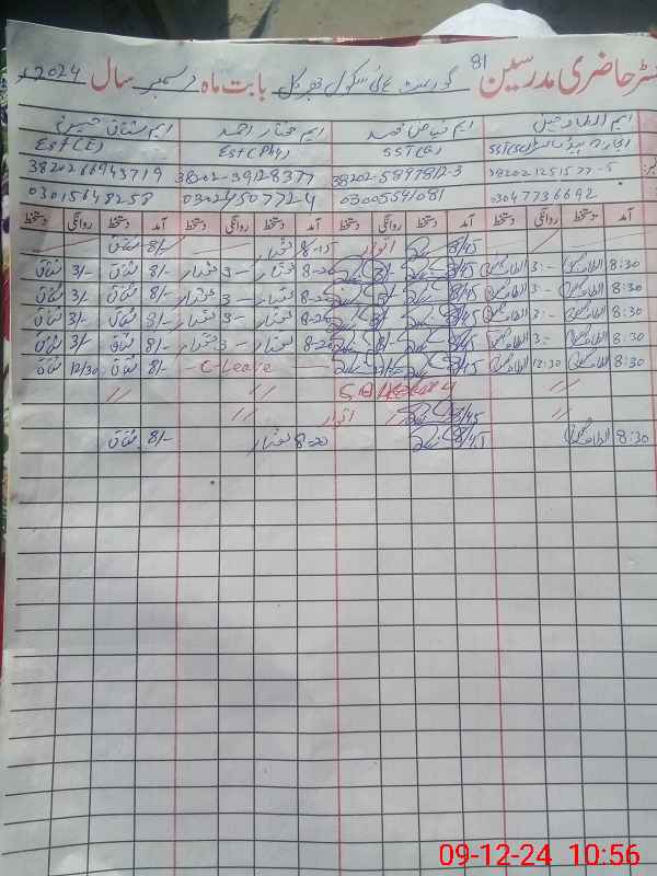 | Name: AL**** HU**** Designation: (School Headmaster's/Headmistress's) SST Science Phone/Cell Number: 03**** |