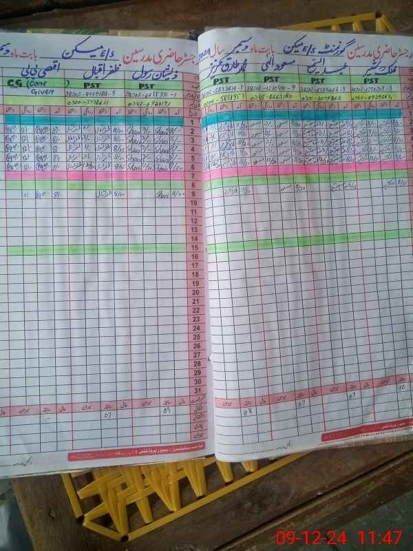 | CNIC | Full Name | Designation | R/C | Absence During Last Calender Month |