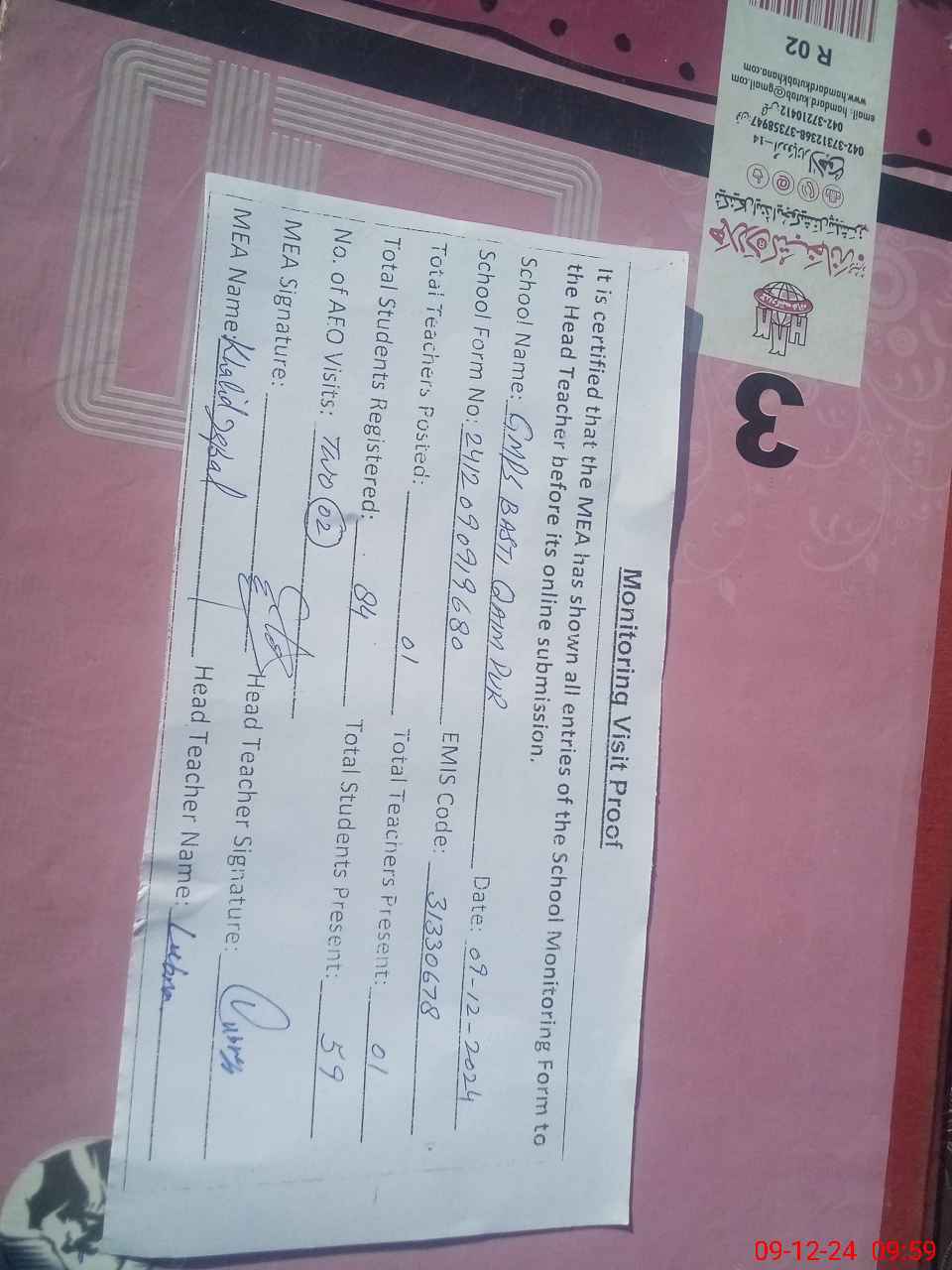 | EMIS Code: 31330678 | Name of School: GMPS BASTI QAIM PUR | |||