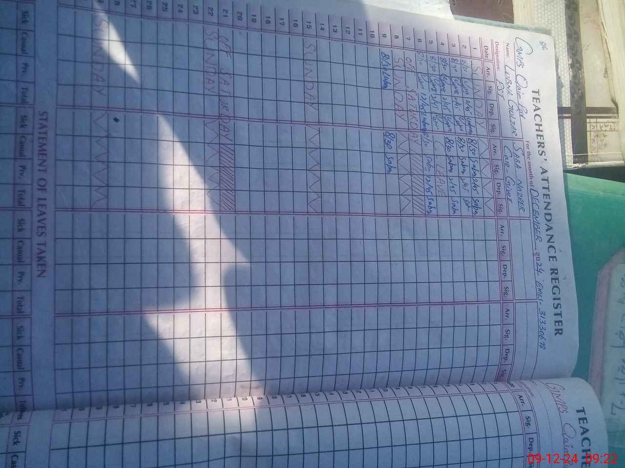 | Remarks (Use Separate Page if Required): Class verification is not updated on mea tab as per sis and NSB record not available and teachers attendance not updated on sis on 09 12 2024 | |||||