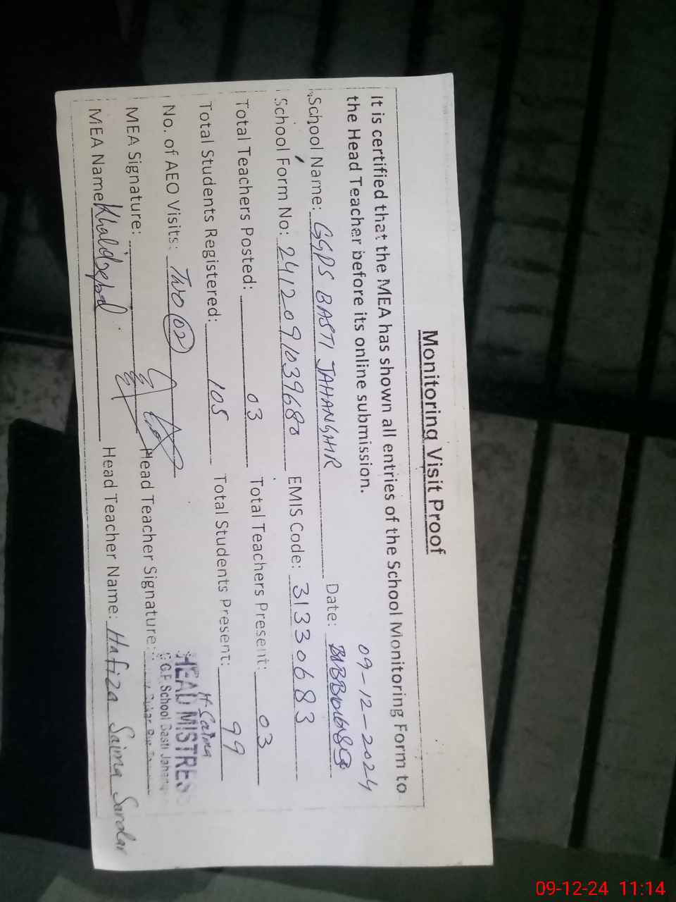 | EMIS Code: 31330683 | Name of School: GGPS BASTI JAHANGIR | |||