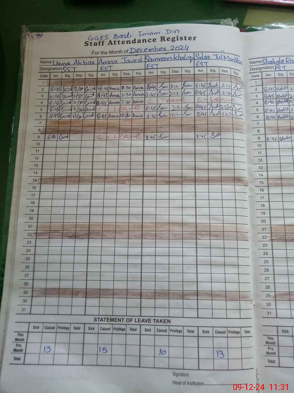 | Remarks (Use Separate Page if Required): Class verification is not updated on mea tab as per sis and teachers attendance not updated on sis on 09 12 2024 | |||||