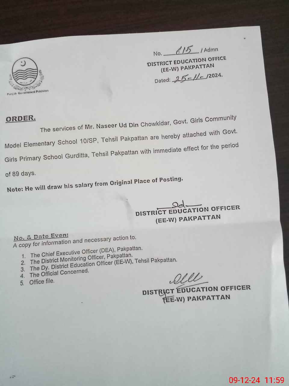 | Name: UZ**** NO**** Designation: (School Headmaster's/Headmistress's) SSE ( Urdu ) Phone/Cell Number: 03**** |