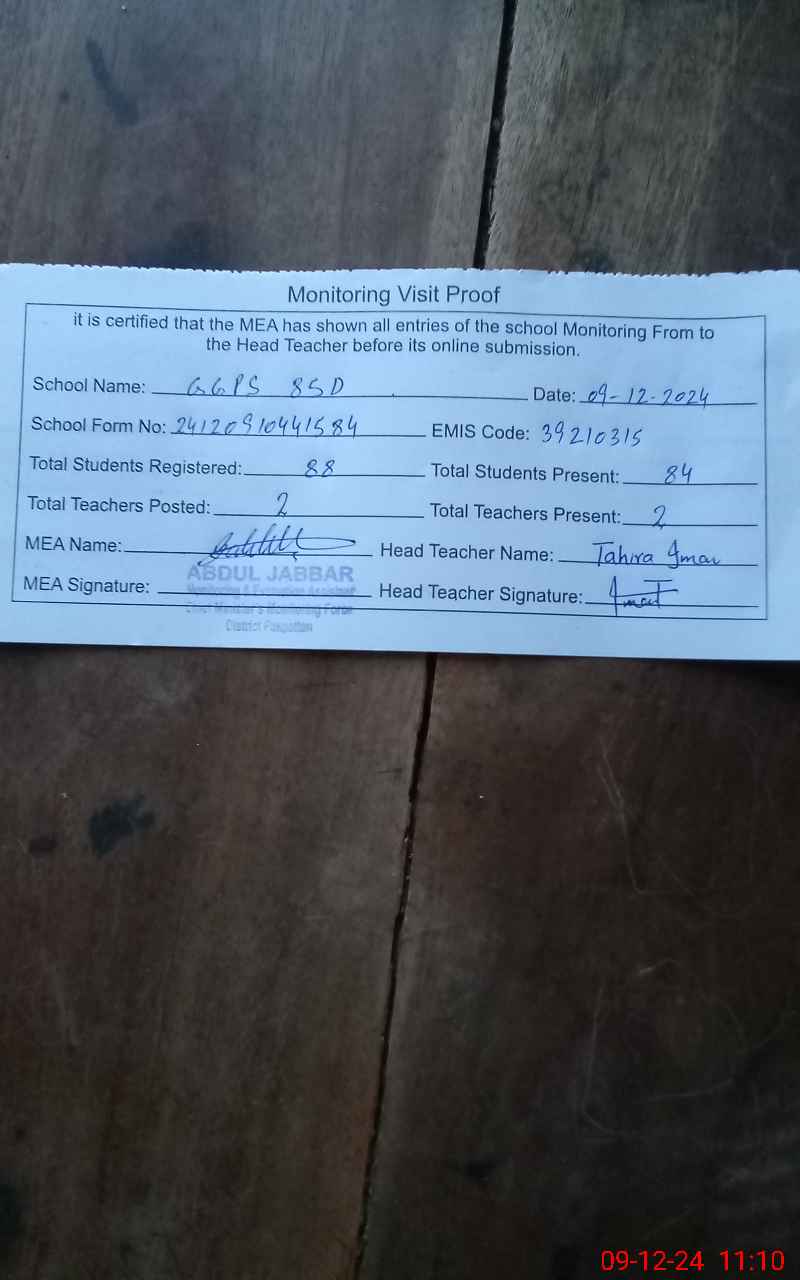 | EMIS Code: 39210315 | Name of School: GGPS 85 D | |||