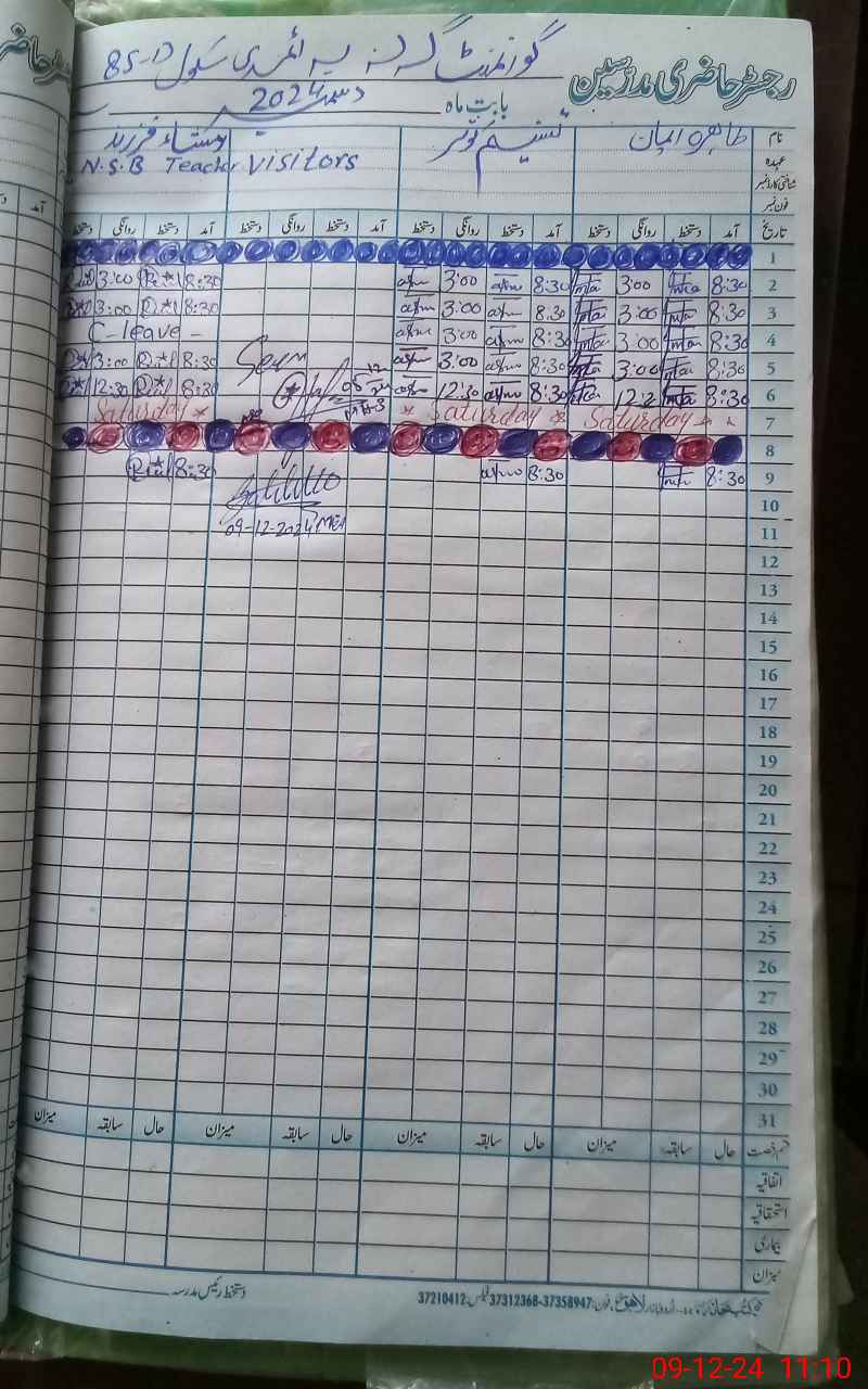 | CNIC | Full Name | Designation | R/C | Absence During Last Calender Month |