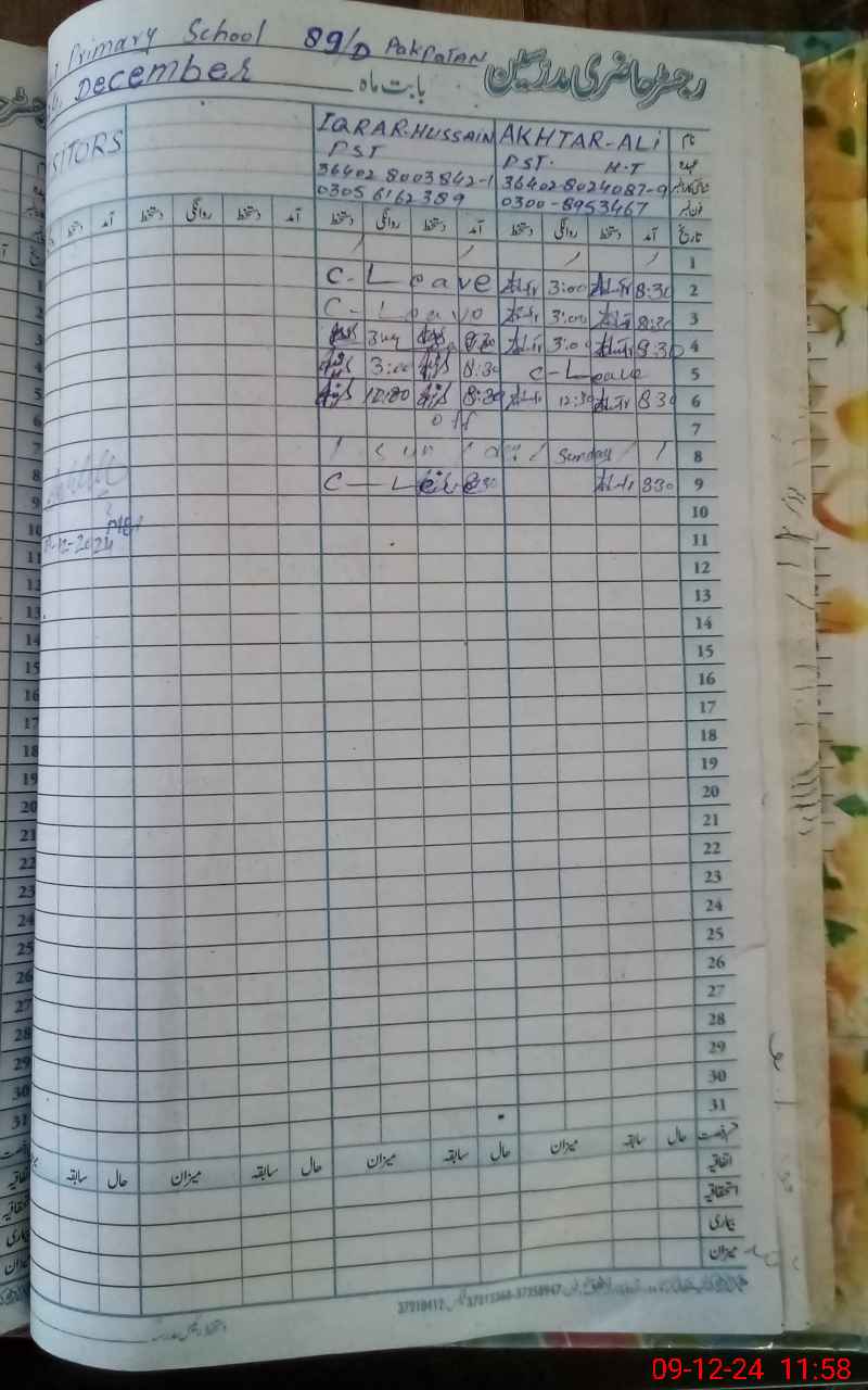 | Name: AK**** AL**** Designation: (School Headmaster's/Headmistress's) PST Phone/Cell Number: 03**** |