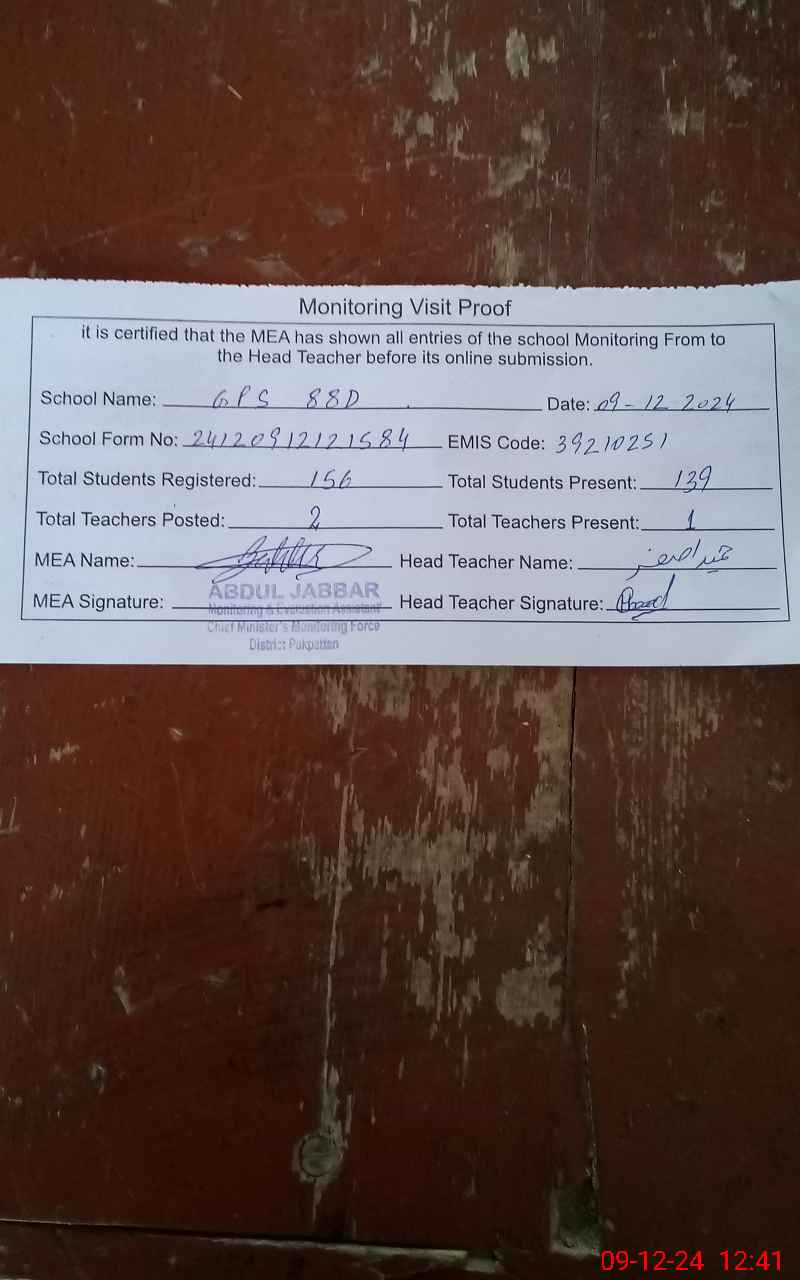 | EMIS Code: 39210251 | Name of School: GPS 88/D | |||