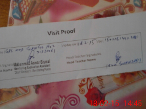 | Attendance Register | Head Teacher | MEA with School | Visit Proof |