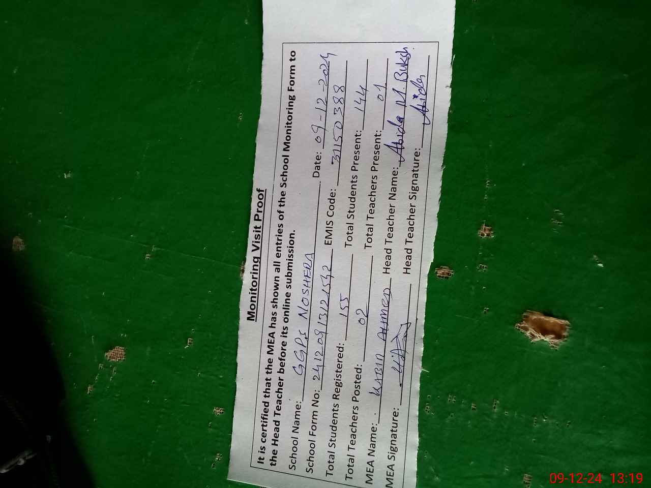 | EMIS Code: 31150388 | Name of School: GGPS NOSHERA | |||