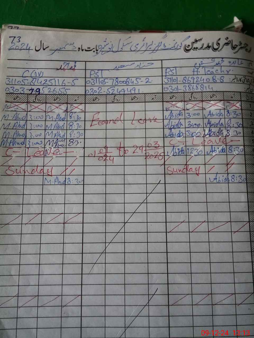 | Name: AB**** BU**** Designation: (School Headmaster's/Headmistress's) PST Phone/Cell Number: 03**** |