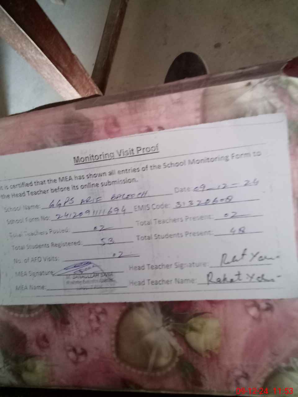 | EMIS Code: 31320608 | Name of School: GGPS ARIF BALOOCH | |||