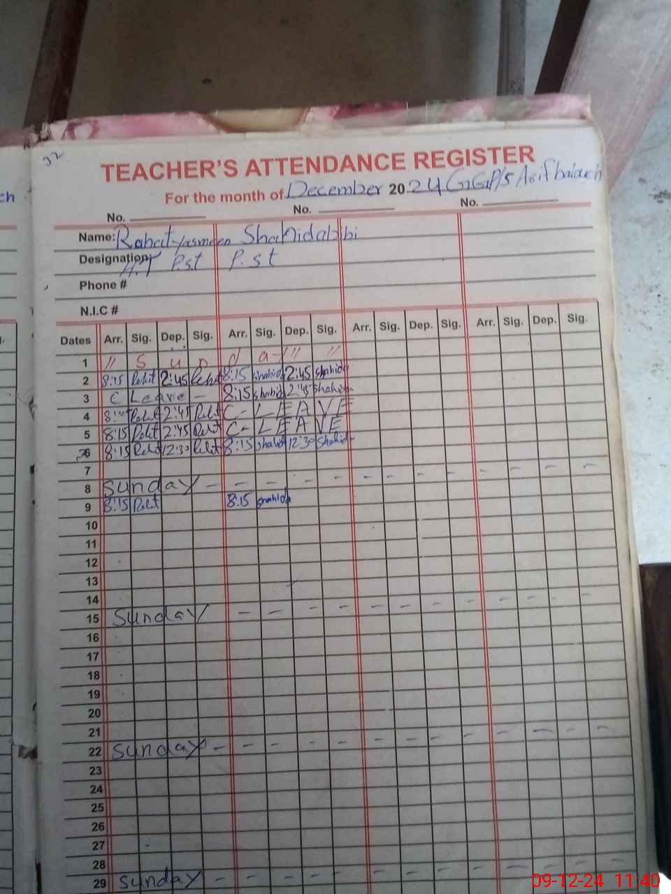 | Name: RA**** YA**** Designation: (School Headmaster's/Headmistress's) PST Phone/Cell Number: 03**** |