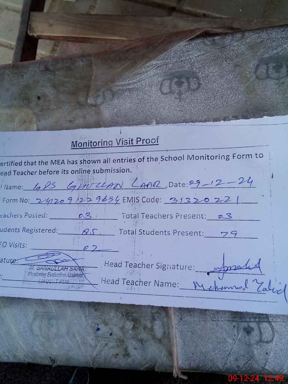 | EMIS Code: 31320221 | Name of School: GPS GULAN LAR LIAQAT PUR | |||
