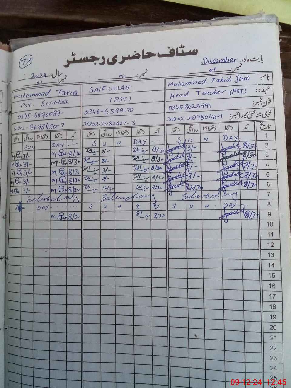 | Name: Mo**** Za**** Designation: (School Headmaster's/Headmistress's) PST Phone/Cell Number: 03**** |