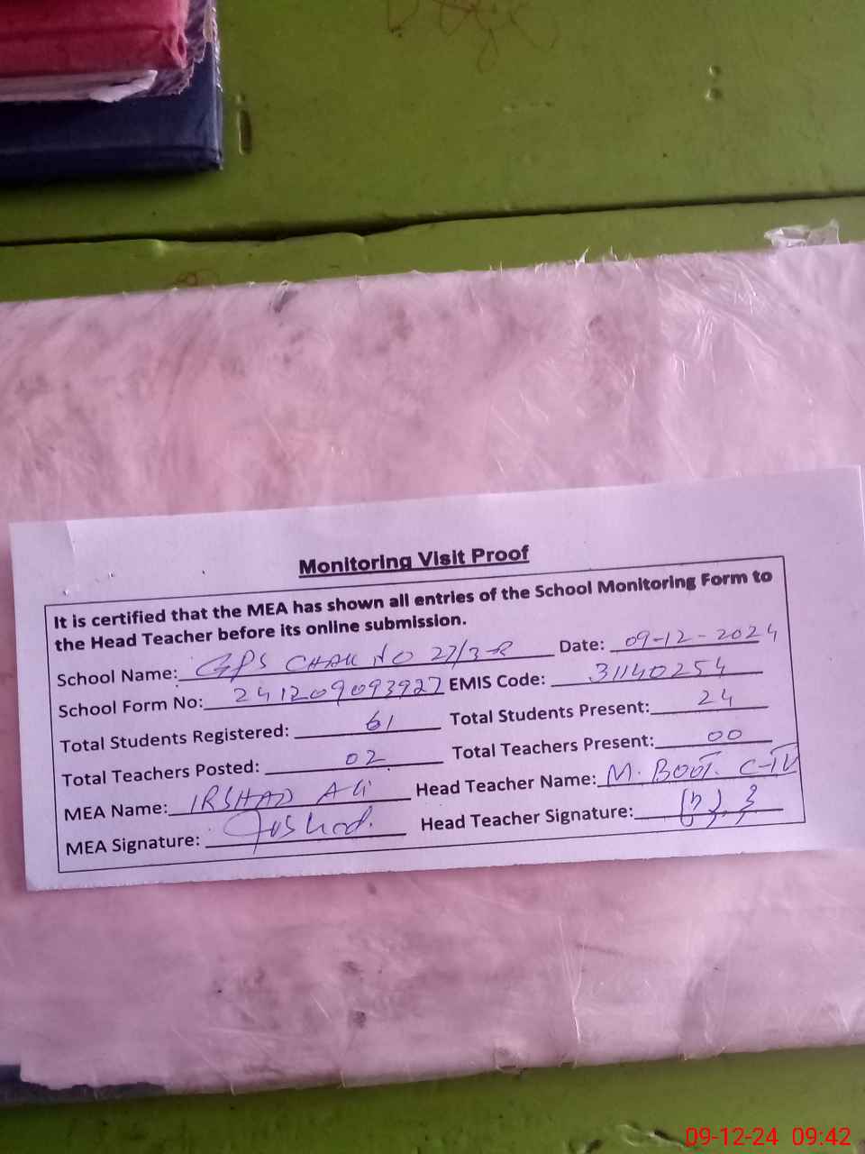 | EMIS Code: 31140254 | Name of School: GPS CHAK NO.27/3-R | |||