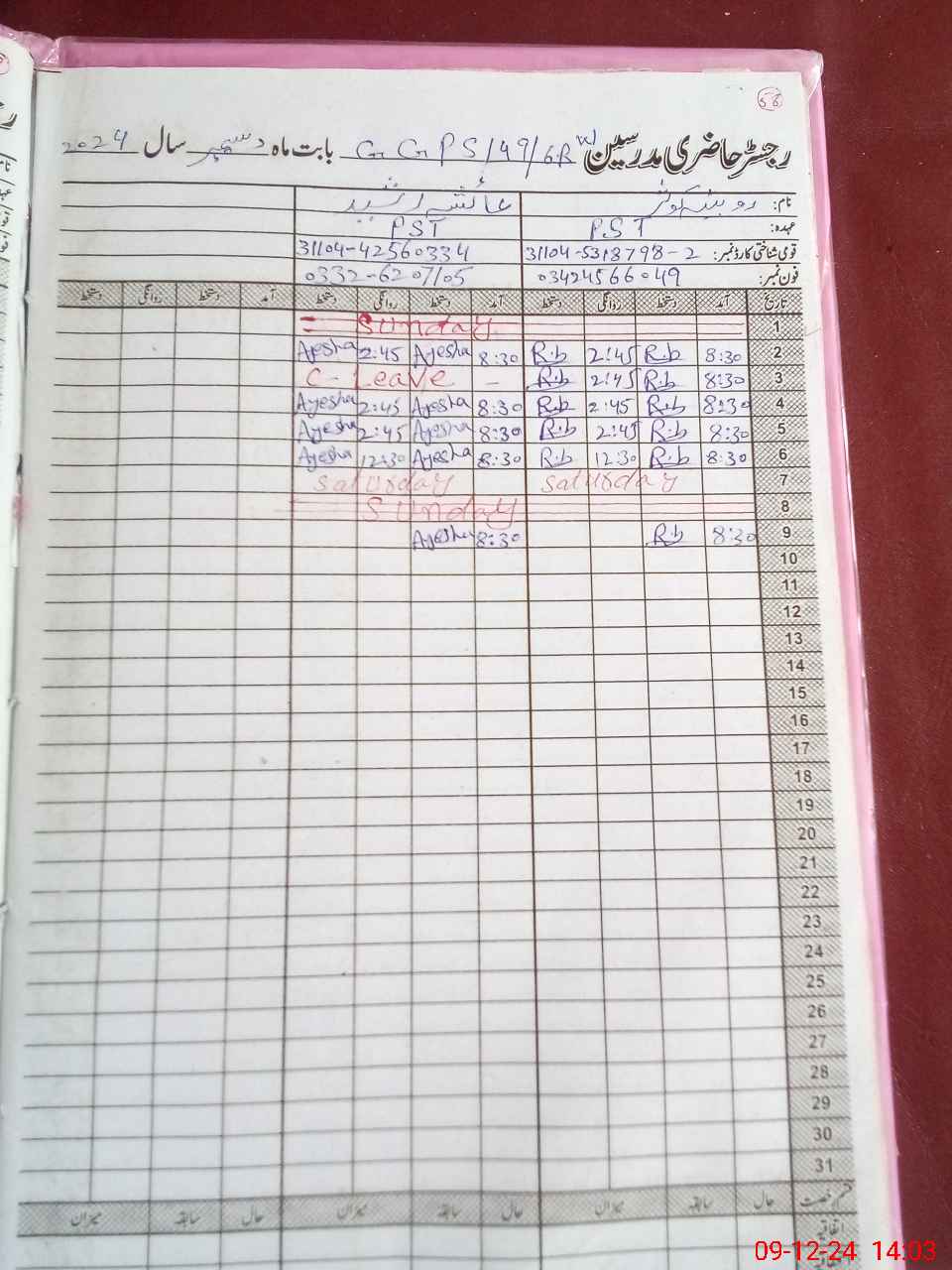 | Name: Ay**** Ra**** Designation: (School Headmaster's/Headmistress's) PST Phone/Cell Number: 03**** |