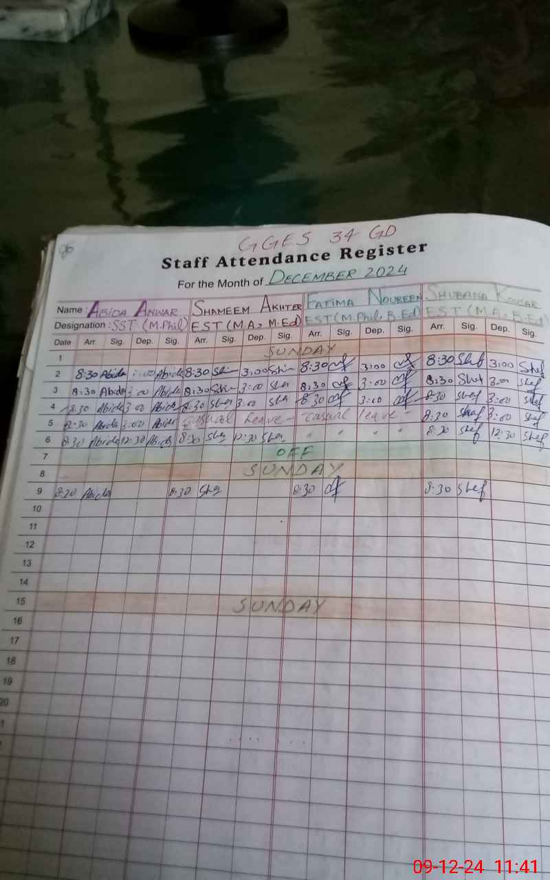 | CNIC | Full Name | Designation | R/C | Absence During Last Calender Month |