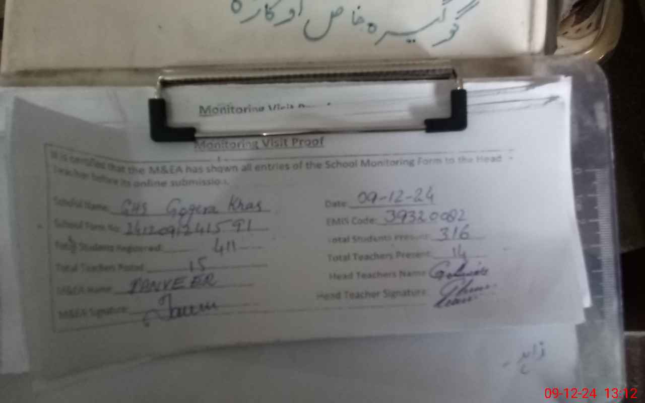 | EMIS Code: 39320082 | Name of School: GHS GOGERA KHAS | |||