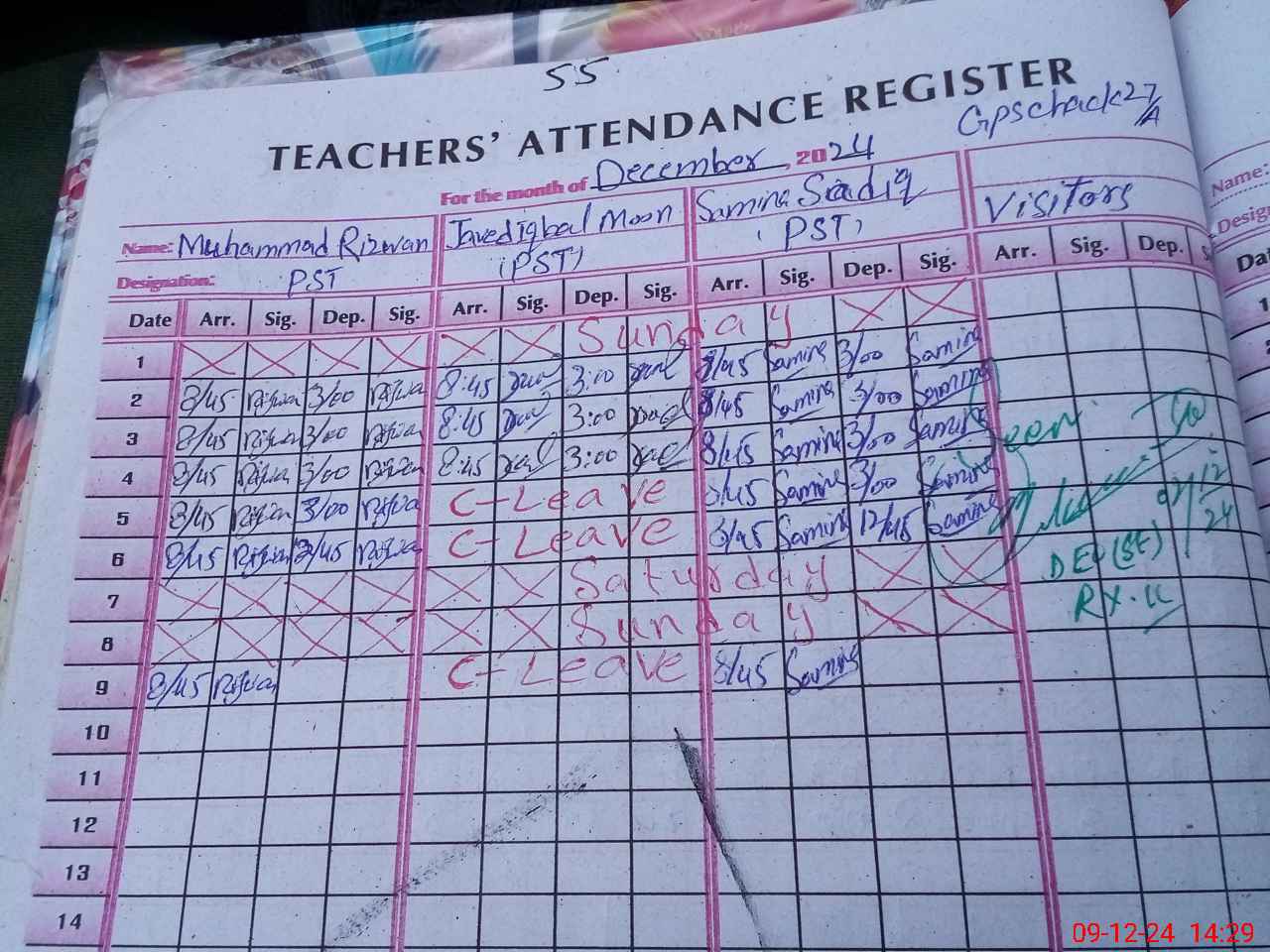 | Name: MU**** RI**** Designation: (School Headmaster's/Headmistress's) PST Phone/Cell Number: 03**** |
