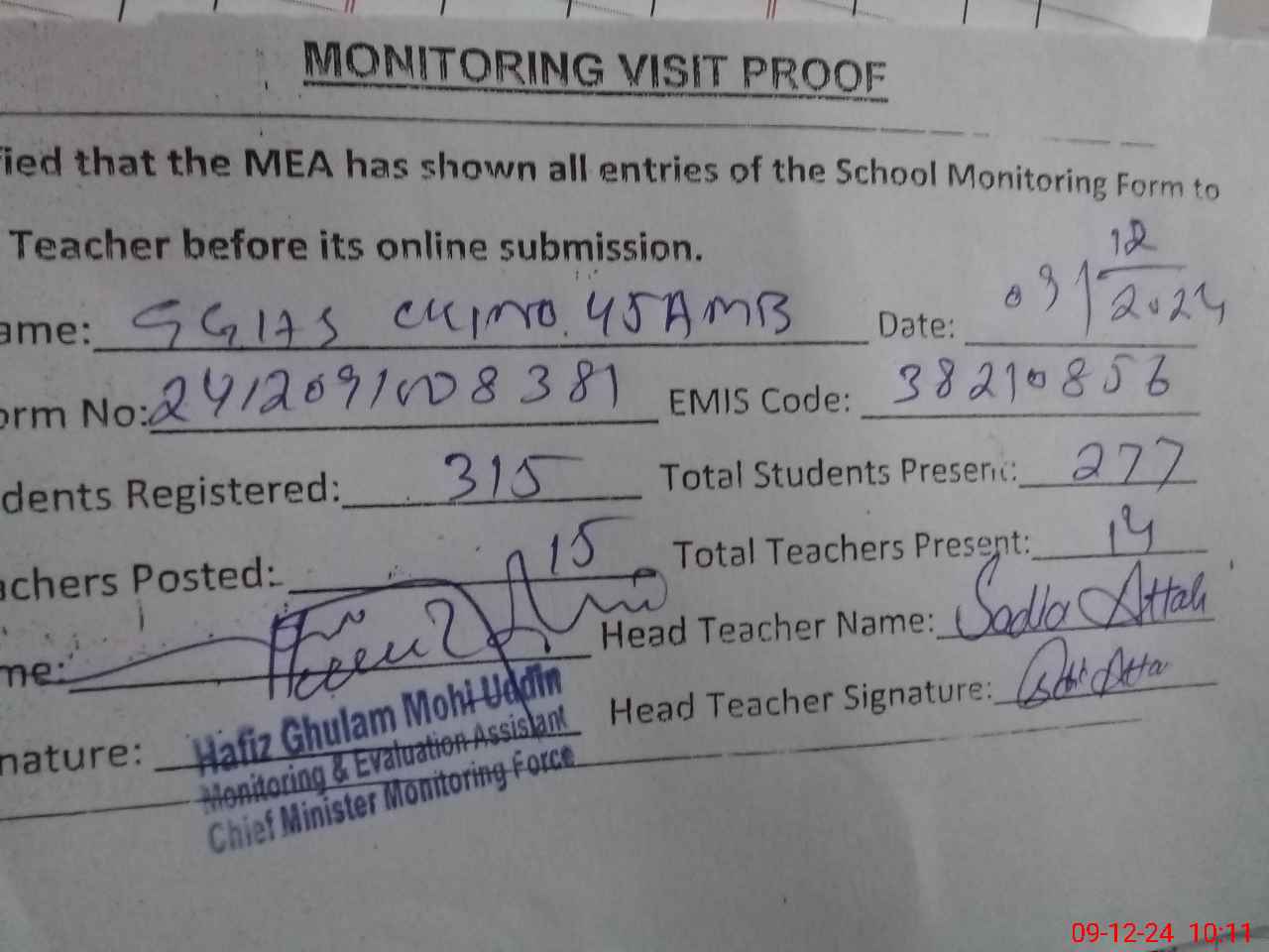 | EMIS Code: 38210856 | Name of School: GGHS CHAK NO. 45-AMB | |||