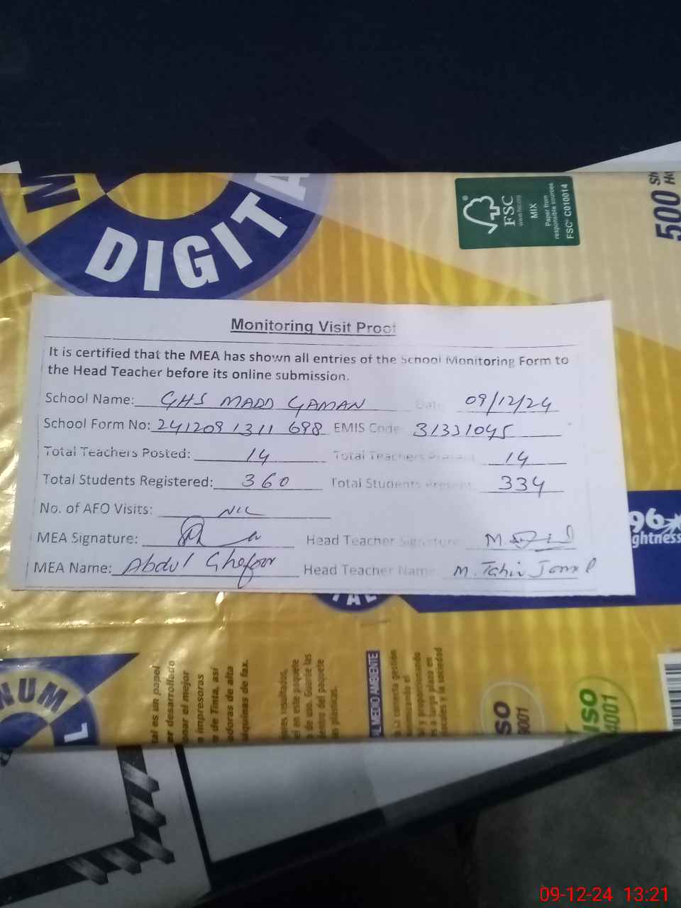 | EMIS Code: 31331045 | Name of School: GHS MADD GAMAN | |||