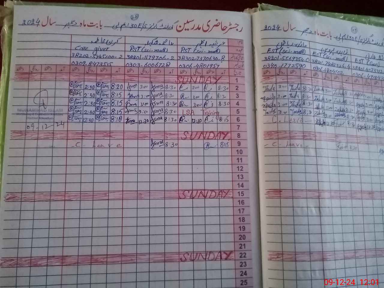 | CNIC | Full Name | Designation | R/C | Absence During Last Calender Month |