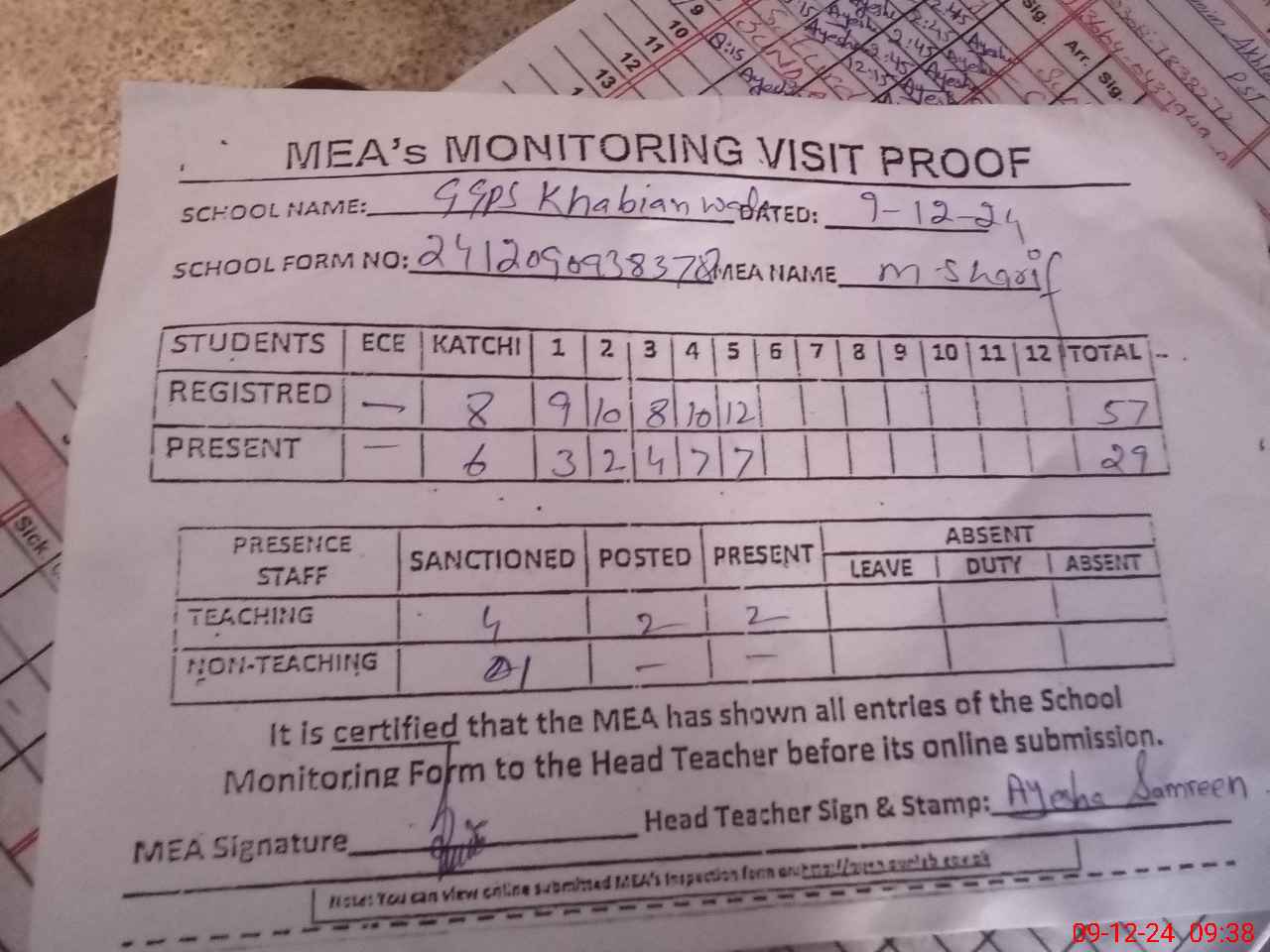 | EMIS Code: 36430403 | Name of School: GGPS KHABIAN WALA, TULAMBA | |||