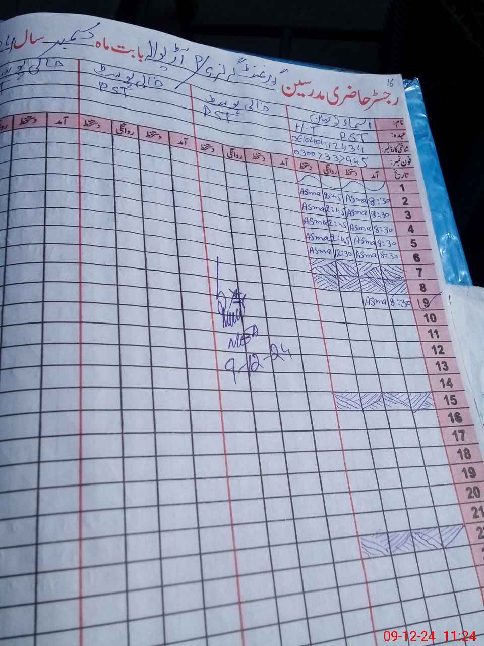 | Name: As**** No**** Designation: (School Headmaster's/Headmistress's) PST Phone/Cell Number: 03**** |