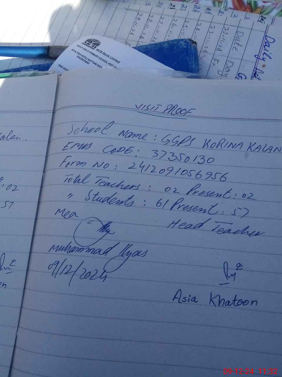 | EMIS Code: 37350130 | Name of School: GGPS KORINA KALAN | |||