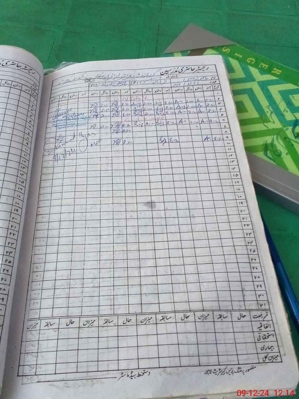 | CNIC | Full Name | Designation | R/C | Absence During Last Calender Month |