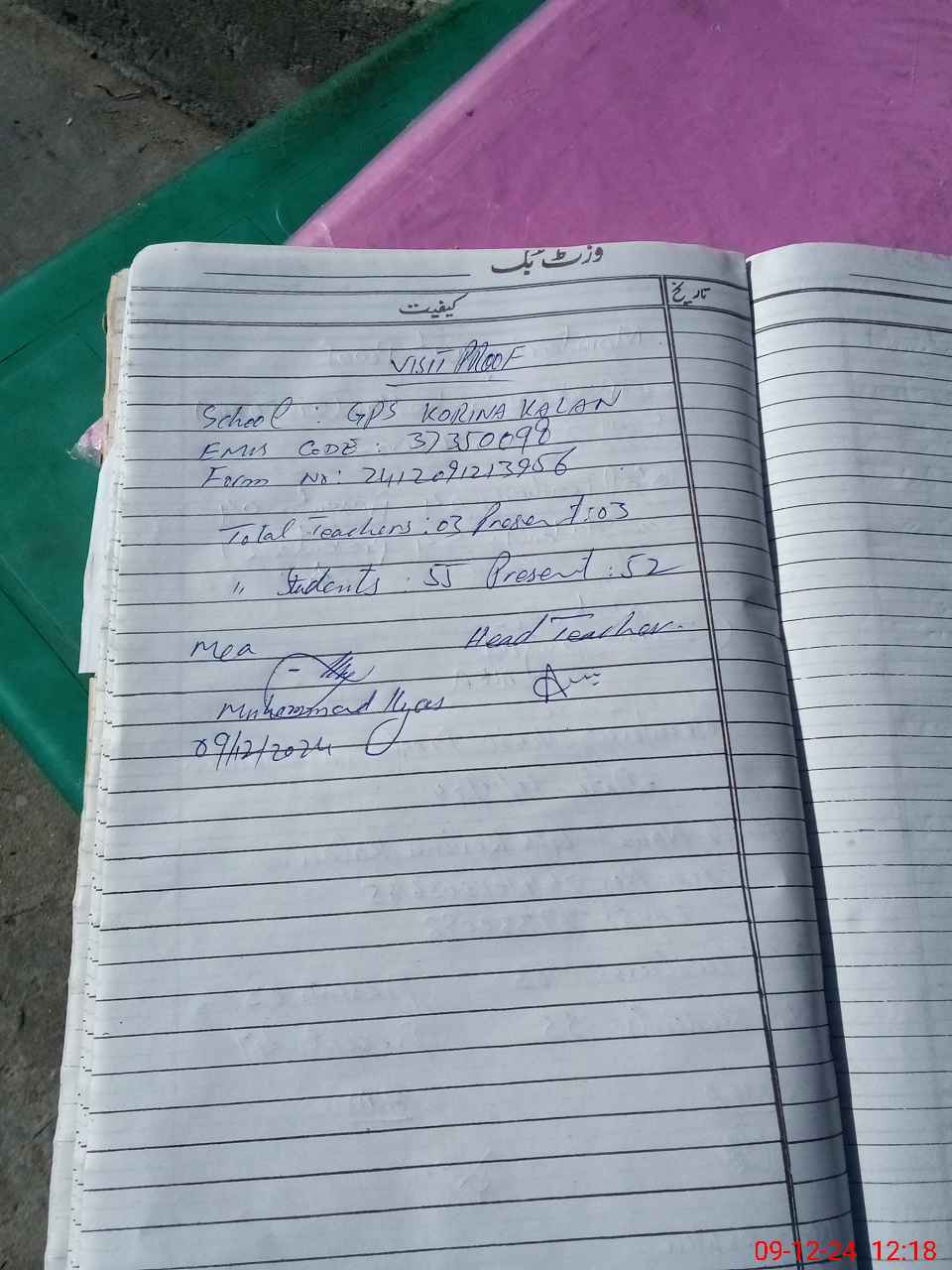 | Attendance Register | Head Teacher | MEA with School | Visit Proof |