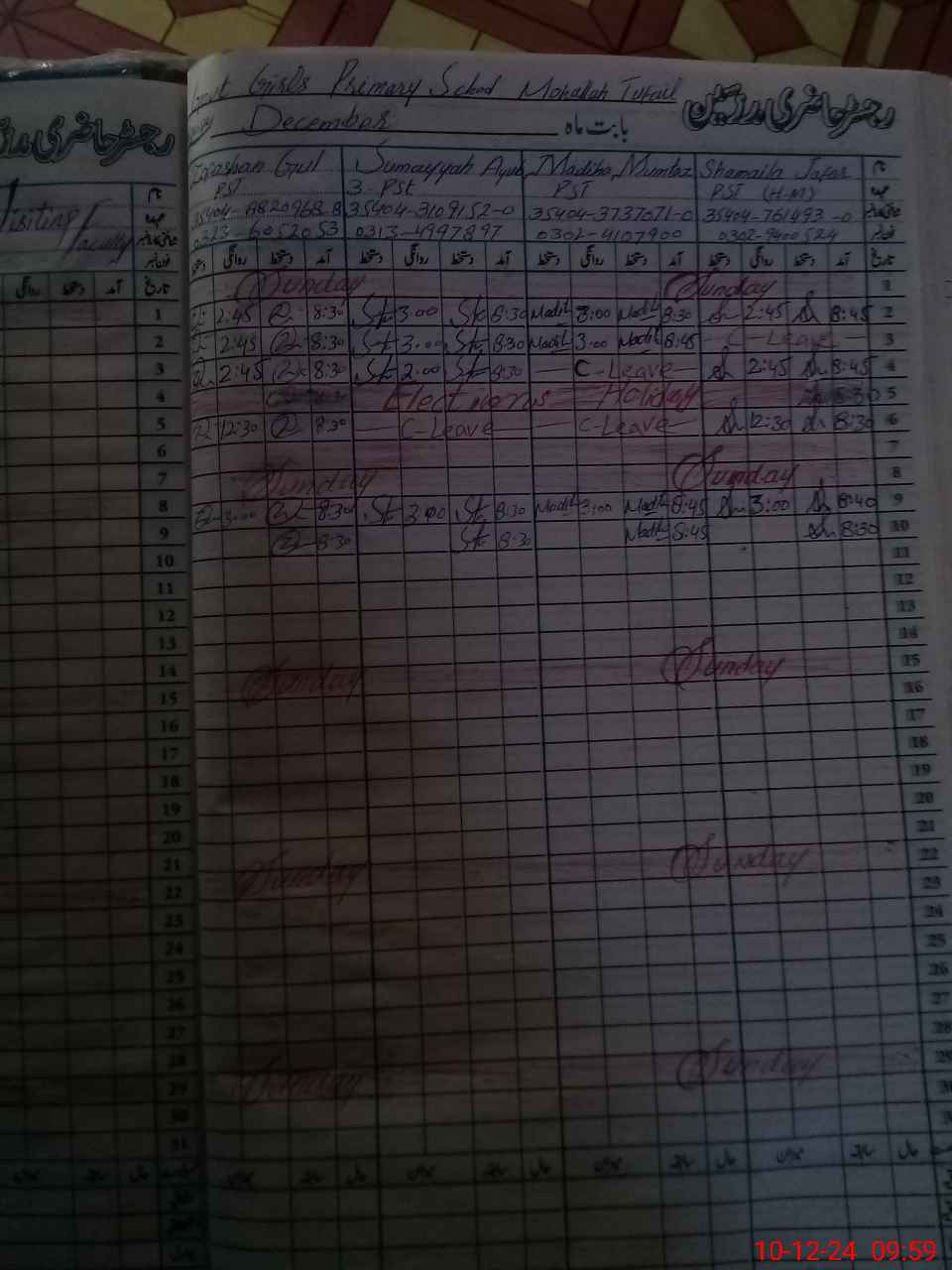 | EMIS Code: 35431255 | Name of School: GGPS MOHALLAH TUFAIL ABAD | |||