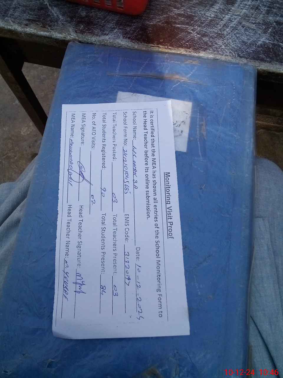 | Certified that this School was Inspected by the Undersigned MEA/DMO Today and the Information Stated Above is as Per Record. | |||||