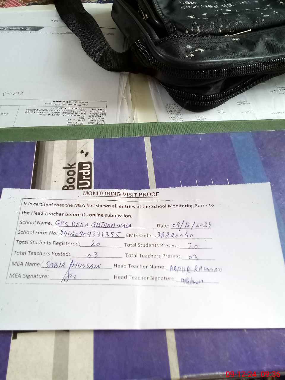 | EMIS Code: 38220040 | Name of School: GPS DERA GUJRAN WALA | |||