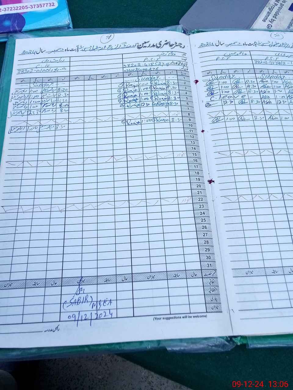 | CNIC | Full Name | Designation | R/C | Absence During Last Calender Month |