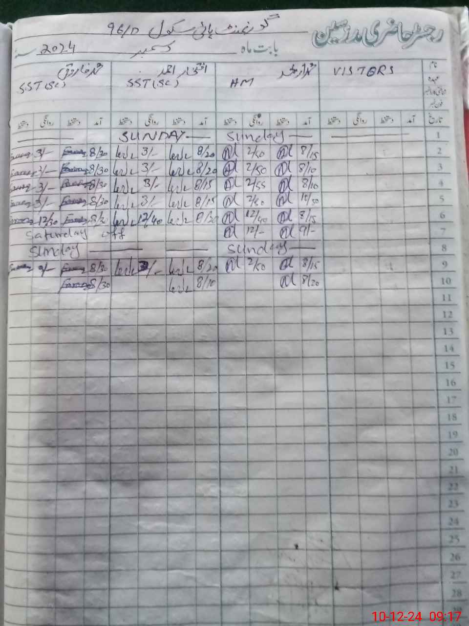 | CNIC | Full Name | Designation | R/C | Absence During Last Calender Month |