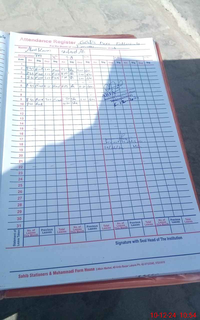 | Name: AZ**** PE**** Designation: (School Headmaster's/Headmistress's) PST Phone/Cell Number: 03**** |