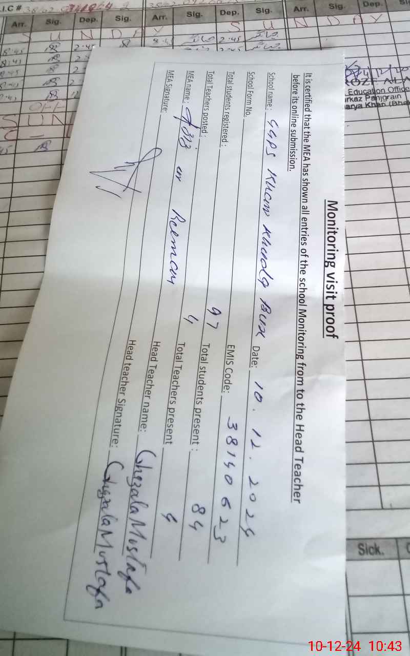 | EMIS Code: 38140623 | Name of School: GGPS KHAN KHUDA BUKHSH | |||