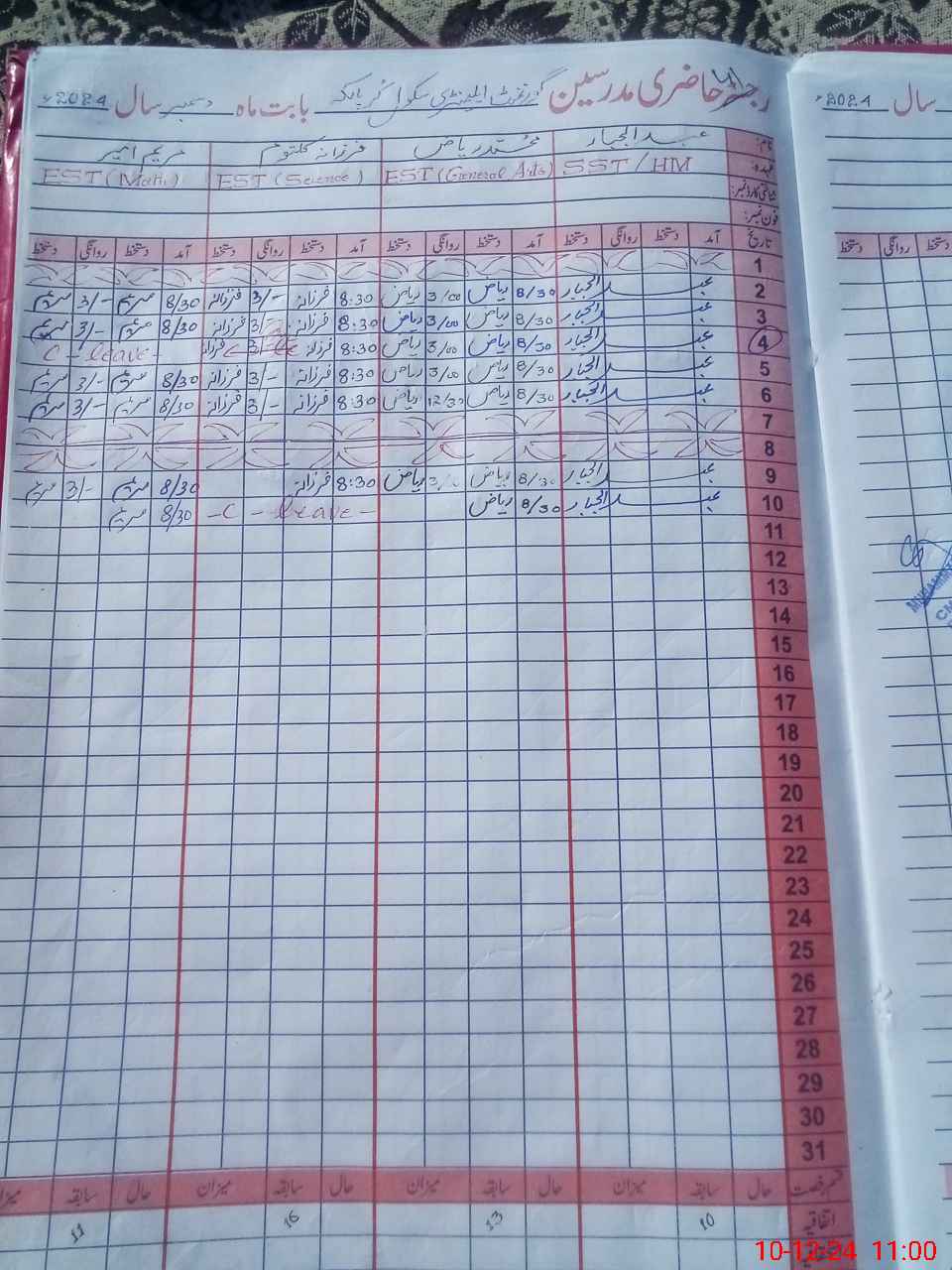 | Leave | Duty | Absent | Maternity | Medical | Ex- Pak |