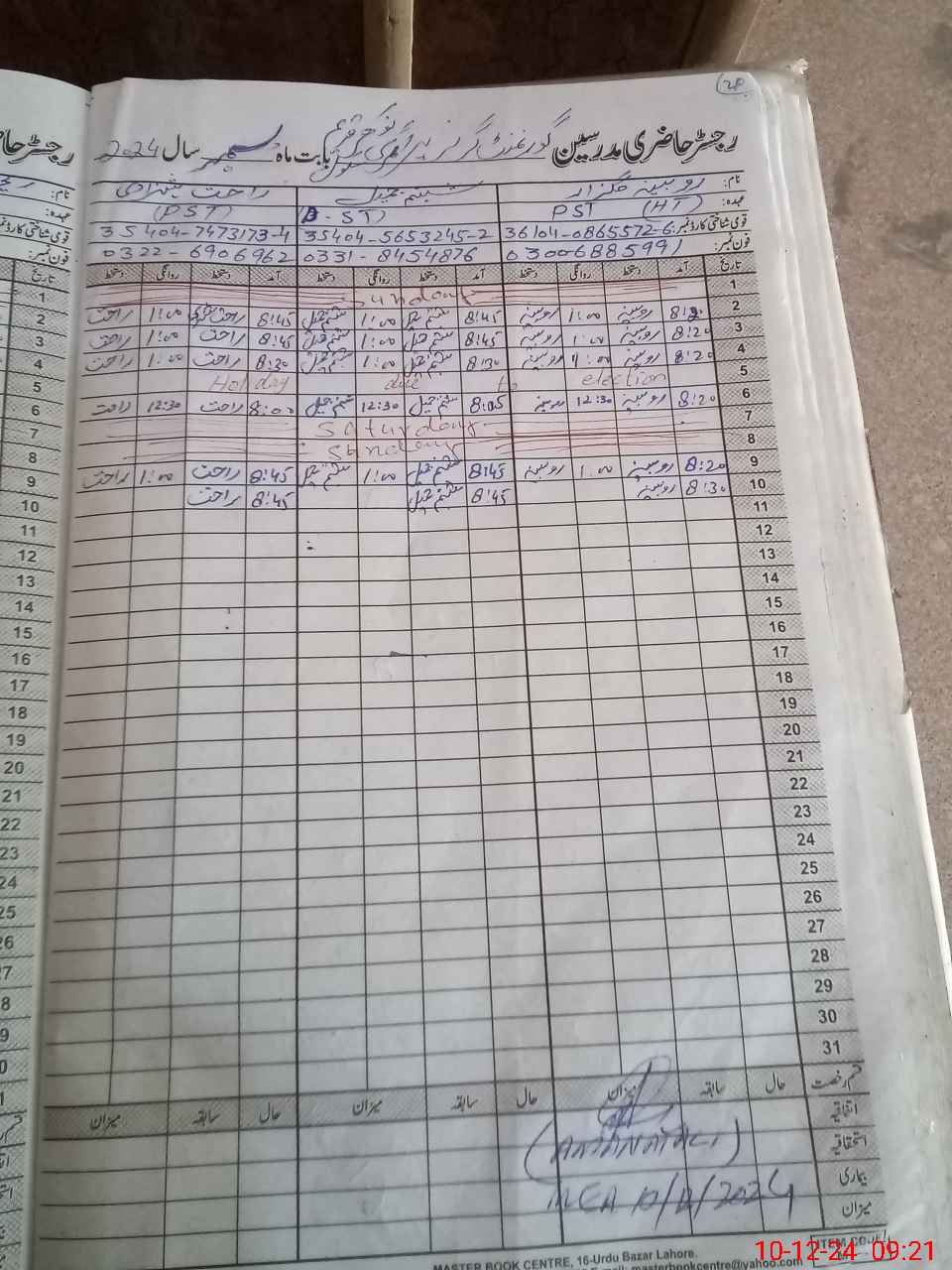 | Name: RO**** GU**** Designation: (School Headmaster's/Headmistress's) PST Phone/Cell Number: 03**** |