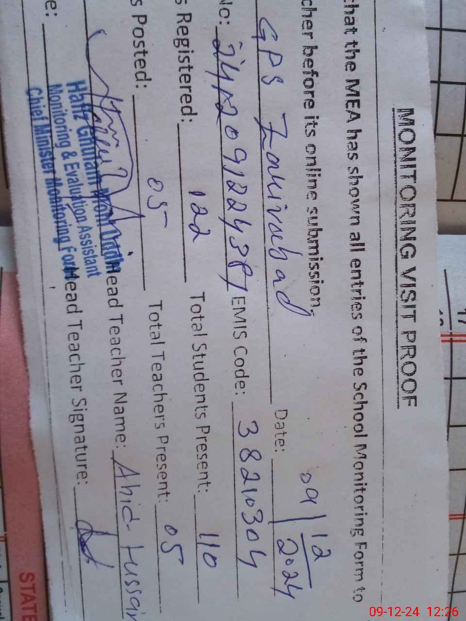| EMIS Code: 38210304 | Name of School: GPS ZAKIR ABAD | |||
